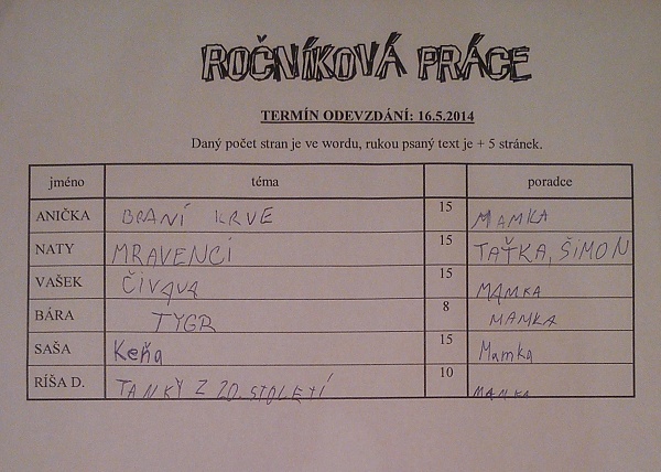 završíme náš pětiletý cyklus ročníkovou prací na volné téma.
